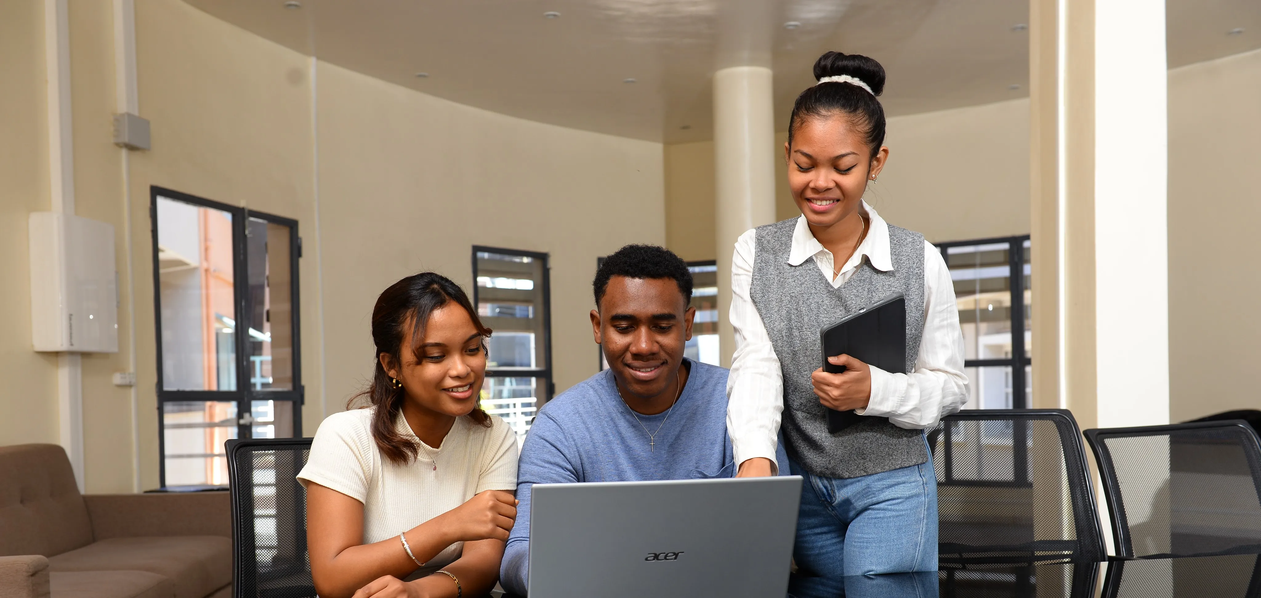 Le Campus ISCAM d’Ankadifotsy dispose de grandes salles et petites salles de cours pouvant accueillir l’ensemble des étudiants, toutes équipées de matériels pédagogiques et didactiques pour faciliter l’apprentissage. Le campus offre un accès Wi-Fi à tous, permettant l’utilisation des ressources numériques et l’accès aux contenus pédagogiques en ligne. La bibliothèque et les espaces de travail collaboratif favorisent la recherche, l’étude individuelle et les échanges entre étudiants.